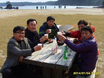미우다로 향해 기념 샷 한장 남기시고 술자리 마련 건배를 하십니다.