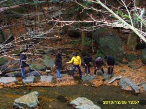 개울물 졸졸 흐르는 계곡 밑을 내려가 삼나무 숲 속으로 걸어 들어가봅니다.