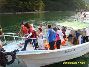 유타리 선착장에서 풍어를 기원 해달라며 손 흔들며 떠나십니다.