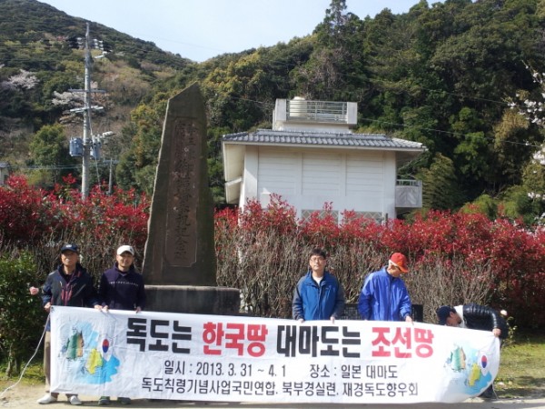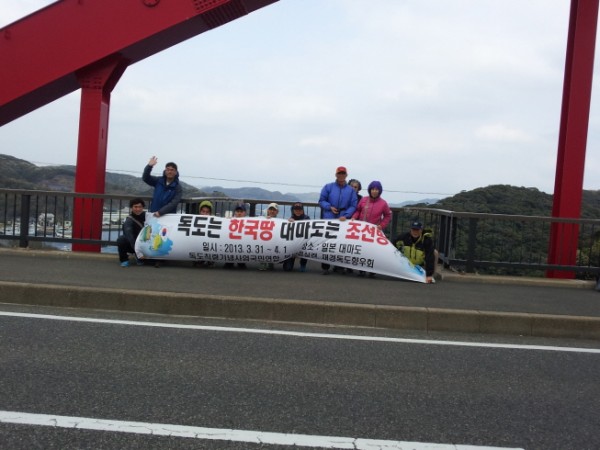멋있는 현수막을 직접 제작해 오시고....독도사랑 독도지킴이 아버님을 은근히~